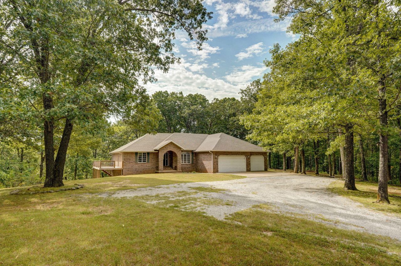 Perfect for multi-generational living or a homeschooling family, this 5-bedroom, 6-bath home offers two full kitchens--one on each level--and multiple living areas totaling 4,284 sqft (2,142 sqft per floor). Set on 20 wooded acres with exterior access on both levels. The main floor includes a large living room, formal dining room, and a kitchen with leathered granite countertops, walk-in pantry, island seating, and access to a covered deck. The primary suite features its own private deck, dual closets, jetted tub, and a tiled walk-in shower. Each of the four additional bedrooms includes a private en-suite bath. The walkout basement has a second living room with wood-burning fireplace and full kitchen--ideal for extended family or separate living quarters. Located just 22 minutes from Ozark, MO.