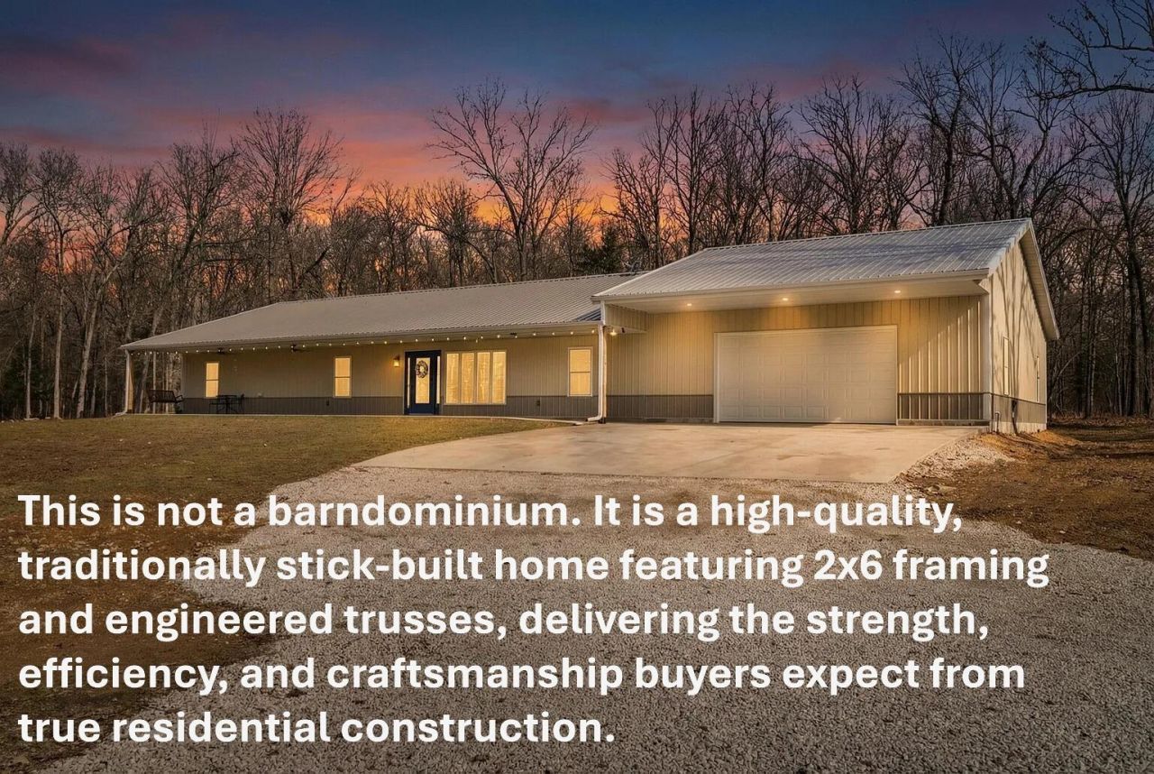 Welcome to your private slice of the Ozarks in Halfway, Missouri. Built in 2020, this exceptional 5-bedroom, 3-bath home offers 2,800 square feet of refined living space set on 20 acres of mature Missouri timber--where peace, privacy, and quiet truly define the lifestyle.Thoughtfully designed for both comfortable everyday living and effortless entertaining, the home features granite countertops, brand-new flooring throughout, and high-end finishes in every room. The open, single-level layout includes widened doorways and zero interior steps, providing seamless flow and improved accessibility. A full-length porch extends the living space outdoors, offering the perfect place to relax and enjoy the surrounding natural beauty.For outdoor enthusiasts, the property provides abundant wildlife and huntable acreage with a strong deer presence. A new high-end wood-burning stove, combined with the property's plentiful timber, offers an efficient and self-sufficient heating option while adding warmth and character to the home. Thoughtful updates throughout create a balance of modern comfort and practical independence.A brand-new 30' x 40' garage provides outstanding versatility for vehicles, equipment, recreational storage, or workshop space--an especially valuable feature for acreage living. The home is serviced by Southwest Electric, providing dependable power and added peace of mind.Enjoy the privacy and seclusion of country living while maintaining a convenient commute to Springfield via Highway 65. Modern construction, usable land, and true Ozarks serenity rarely come together like this.If you've been searching for privacy, quality, comfort, and independence--this property delivers.