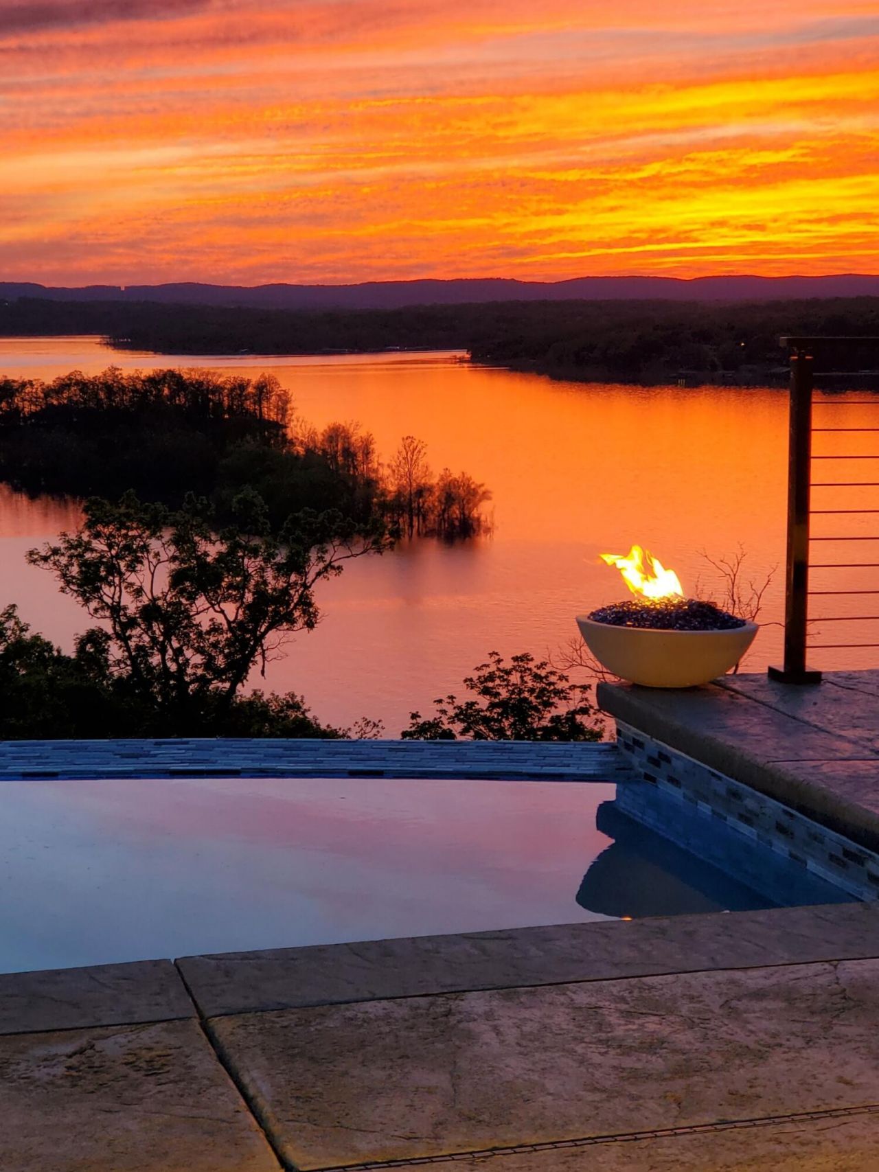 Proudly presenting this Majestic Table Rock Lakefront Estate with some of the best views on any lake anywhere! The location, layout, design & flow of this home are perfect. The build quality & finishings are luxurious. The Views of TRL & the Ozark Mountains are so vast & breathtaking that words fail to describe. But these views are not just from the expansive covered lakefront deck or the Saltwater Infinity Pool with fire features to either side. They are throughout the main floor living space thanks to the walls of windows & 8' tall patio doors that complement the 10' ceilings. The moment you step through the front door into the foyer you are greeted with a grand entrance to the Great room with a cozy fireplace & congregating area which flows to every other area of the home. Straight ahead is the dining & open Kitchen with Subzero refrigerator, Wolf appliances & Quartz countertops. The 2 Guest En Suites are down the hall to the right with garage entry just beyond. To the left is the sun/hearth room with amazing lake views, 2nd fireplace & access to the covered outdoor living space. Beyond the Kitchen is the Primary Suite with walk-in closet, soaking tub, heated floors & double shower. Huge bedroom space with direct access to the covered patio & amazing lake views. Take the stairs to the lower level where there is currently an exercise room, half bath, high end Theatre room & heated unfinished utility room for storage. Optional 10' x 28' boat slip is just down the road & by water is close to Campbell Point Marina. Property includes lots 10 & 11 totaling 3.47 acres. The exterior is stone veneer & Diamond Kote LP SmartSiding. The roof covering is stone coated steel shingles & the decking is composite. Attached oversized 3 car garage with workshop with a separate John Deere shed on the lower level. The inner garden is completely fenced with sprinkler system, center deck with seating, fire feature, natural water feature with heavy rains & covered wraparound deck.