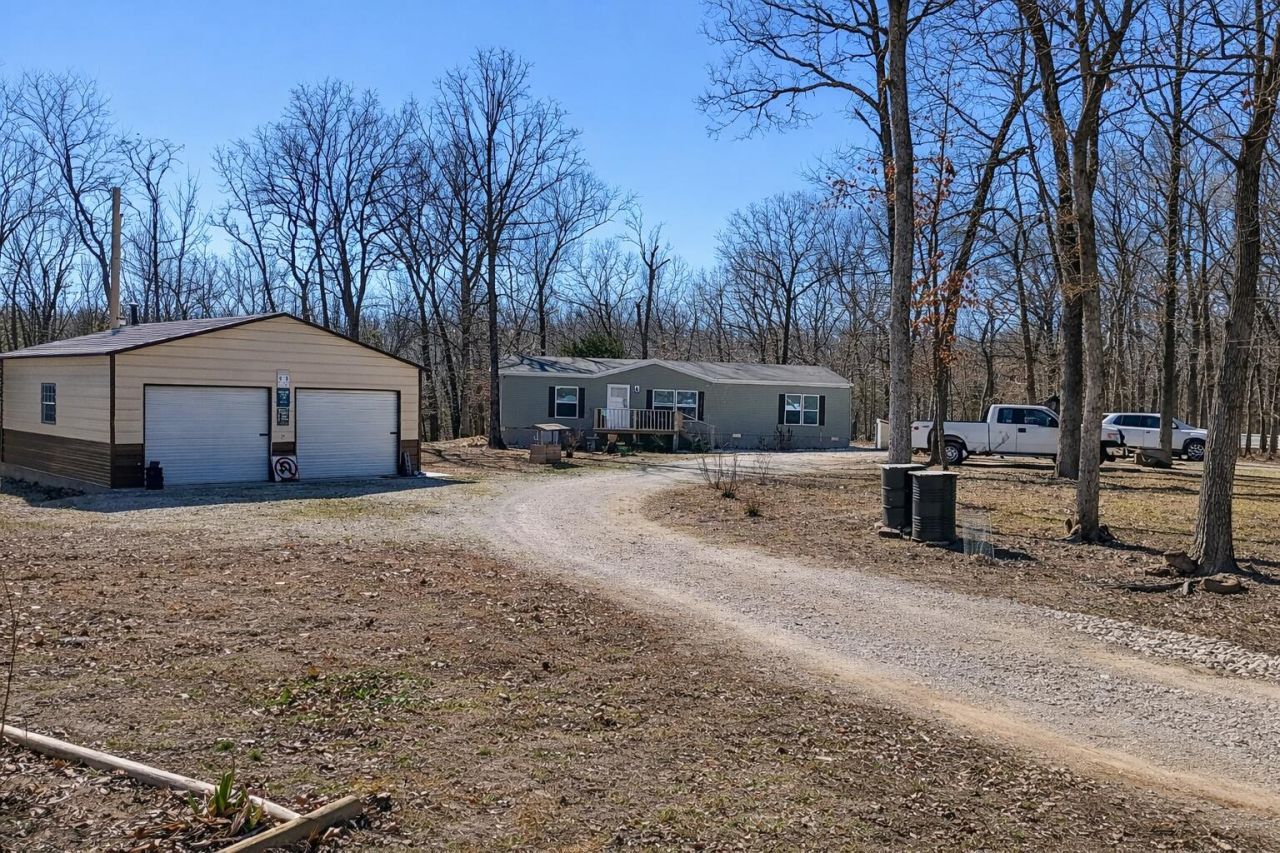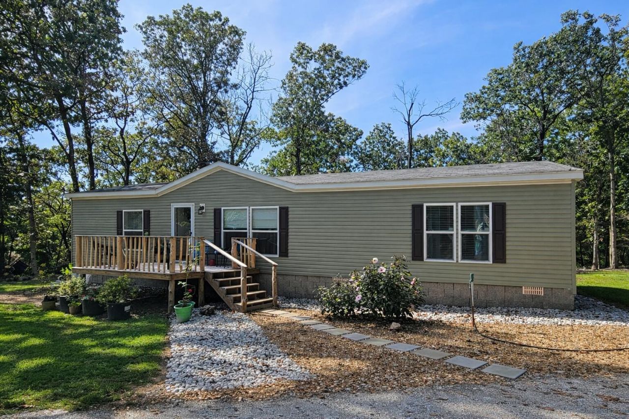 If you've been dreaming of a little place in the country with room to roam, this is it. Sitting on 10.94 mostly wooded acres, this 3 bedroom, 2 bathroom home offers privacy, peace, and plenty of space to enjoy the outdoors. Built in 2023 with sturdy 2x6 walls, the home features spacious bedrooms with walk-in closets, a large utility room with abundant cabinet space and storage, and a comfortable, easy-flow layout that just feels welcoming.Step through the sliding glass door onto the big back deck overlooking your wooded backyard and wet weather creek. The deck is truly special, showcasing hand-carved spindles made from trees right off the land -- adding that perfect rustic touch. It's the ideal spot for grilling, entertaining, or unwinding around the fire pit under the stars.Love the lake life? You're just a short drive to a Pomme de Terre Lake boat launch, making fishing and boating days easy and convenient. There's plenty of room here to store boats, trailers, and all your lake toys. The 24x24 detached 2-car garage features concrete floors, power, and a wood-burning stove for those cold winter days. A 16x10 storage shed and established garden areas add even more functionality.Enjoy the quiet country setting while still being close to Bolivar for shopping, dining, and everyday needs. Privacy, acreage, lake access nearby, and room to breathe -- this one checks all the boxes for true country living.