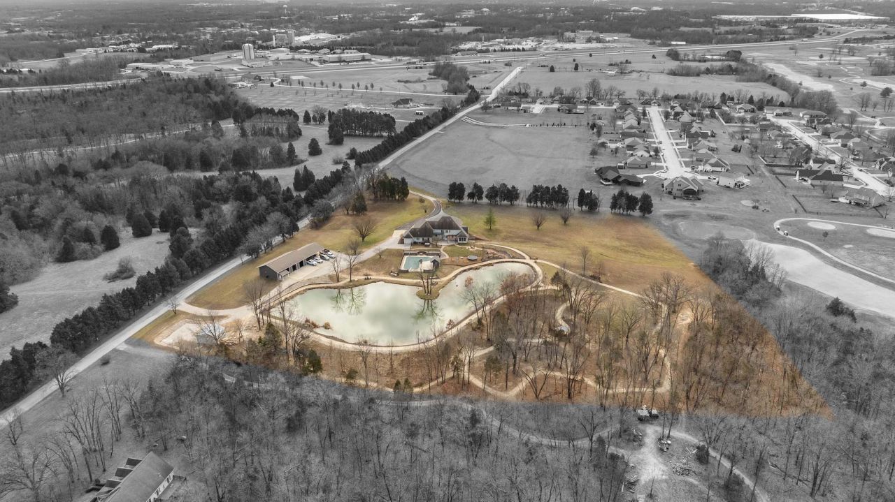 Stunning 11-acre estate offering 4 beds, 4.5 baths, 5,731 finished sq ft and exceptional indoor/outdoor living. Main level features a formal living and dining room, vaulted living room with fireplace, sitting room with 2nd fireplace, office, and sunroom. Primary suite includes hardwood floors, crown molding, patio access, Jacuzzi tub, full shower, double vanity and walk-in closet. Upper level offers 3 bedrooms, hall bath, large foyer with balcony, and a 2nd primary suite with rear balcony. Walkout basement includes a spacious rec room, full wet bar, storm room and 2199 unfinished sq ft large storage areas. Outside features an in-ground saltwater pool with slide, diving board and pool house, a .50-acre stocked pond, walking trails and covered bridge. With over 7900 total Sq ft. Includes a 30??60 shop with epoxy floors, 2-post lift, 3 bays, 200-amp service and attached 30??40 pavilion, plus a 24??24 barn. Central vac, 3 HVAC systems, 3 water heaters, fenced playground and beautiful landscaping complete this rare property.