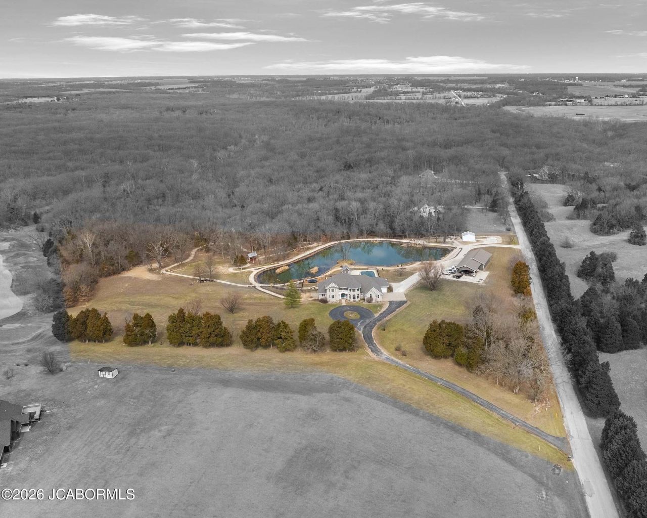 Stunning 11-acre estate offering 4 beds, 4.5 baths, 5,731 finished sq ft and exceptional indoor/outdoor living. Main level features a formal living and dining room, vaulted living room with fireplace, sitting room with 2nd fireplace, office, and sunroom. Primary suite includes hardwood floors, crown molding, patio access, Jacuzzi tub, full shower, double vanity and walk-in closet. Upper level offers 3 bedrooms, hall bath, large foyer with balcony, and a 2nd primary suite with rear balcony. Walkout basement includes a spacious rec room, full wet bar, storm room and 2199 unfinished sq ft large storage areas. Outside features an in-ground saltwater pool with slide, diving board and pool house, a .50-acre stocked pond, walking trails and covered bridge. With over 7900 total Sq ft.