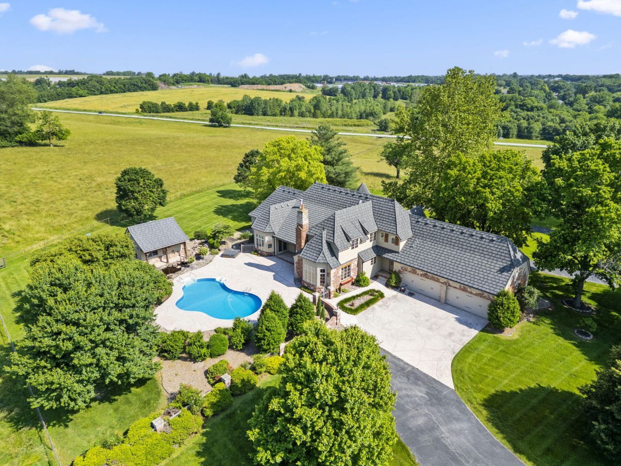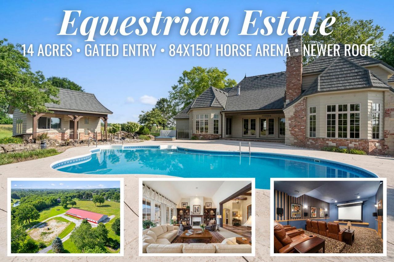 14+/- acres! Captivating 4 bed, 3 full, 3 half bath home with a gated entry, 84x150' horse arena, inground pool, hot tub, 4 car garage, and pool house! Inside, discover a grand entrance with beamed ceiling, and brick and hardwood flooring. The formal living room offers built-ins around the fireplace with lighting and an arched doorway to the kitchen. The kitchen features a large island, walk-in pantry, stainless appliances including a gas cooktop, dining area, and hearth room with a 2nd fireplace and powered blinds. Completing the left wing of the home is a formal dining room, laundry room, and powder room. On the right side of the main floor is the primary suite with vaulted wood ceilings, a massive bathroom with jetted tub, dual vanities, a walk-in tiled shower, large walk-in closet, and nearby walk-in off season closet. Upstairs, discover 2 more bedrooms, a full bath, and finished storage space. The basement includes a recreation room with wet bar, theater room, bedroom, and full bathroom. Enjoy entertaining outside on the stamped concrete patio with inground pool (includes a pool heater/cooler), hot tub, koi pond, gas fire pit, and pool house with half bathroom. The horse arena has a wash stall, viewing room, full kitchen, 15 horse stalls, bathroom, laundry room, and an indoor riding arena. The barn could easily have an additional bedroom, and includes two storage rooms and a fly spray machine over each horse stall. There is an additional 85x115' outdoor riding arena. Located across from Lakes of Wild Horse subdivision in Glendale School District. Other features include: new roof on house and barn within last 2 years, a whole house generator, front yard irrigation, laundry shoot, and auto-light shut off in closets. This is a must-see home!