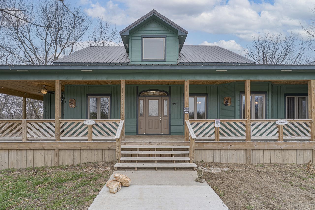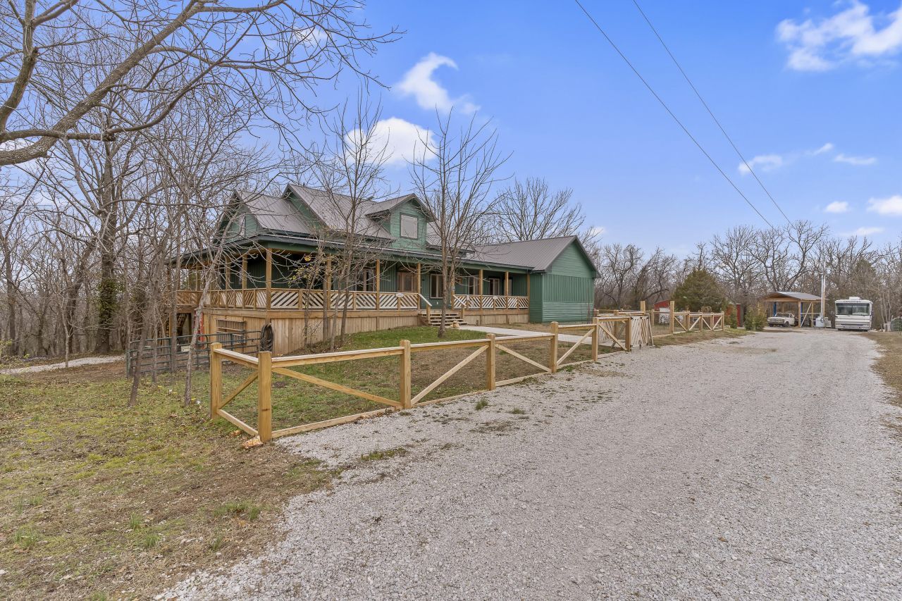 Welcome to your practically brand-new, custom-built 2024 cabin in the woods?a private retreat on 7.64± acres that backs directly to Corps of Engineers land with seasonal lake views and kayak access right from your backyard. Designed and built with meticulous craftsmanship, this all-wood 4 bedroom, 3 bath home radiates warmth, charm, and quality in every detail.Step inside to soaring vaulted and high ceilings, creating a spacious, lodge-like atmosphere that instantly feels like home. The wood flooring throughout the main level makes for easy care and enhances the natural warmth of the interior. As you enter, you'll be greeted by a massive formal dining room perfect for large gatherings?complete with a cozy window nook and a thoughtfully placed doggy door so your furry family members never miss the celebration.Two generously sized bedrooms, each accented with cedar, sit just off the main corridor. The home then opens into a stunning open-concept living area, ideal for entertaining. The chef's dream kitchen features granite countertops, two oversized sinks, a center island, an abundance of custom cabinetry, and a walk-in pantry so large it feels like your own private grocery store?a truly spectacular feature.From the main level, stairs lead to a charming half-story loft that overlooks the living area and kitchen, offering an incredible view of the architectural detail and open space below. This elevated nook provides the perfect spot for reading, relaxing, or simply enjoying the beauty of your custom cabin.The primary suite is an oasis of its own, offering an exceptionally large bedroom, huge walk-in closet, private tub, walk-in shower, and luxurious heated floors. Step directly onto your screened-in deck to enjoy morning coffee while watching wildlife and the peaceful wooded scenery. From there, the outdoor living continues onto a full-length back porch that wraps to the side?offering ceiling fans, can lighting, and ample outlets for year-round