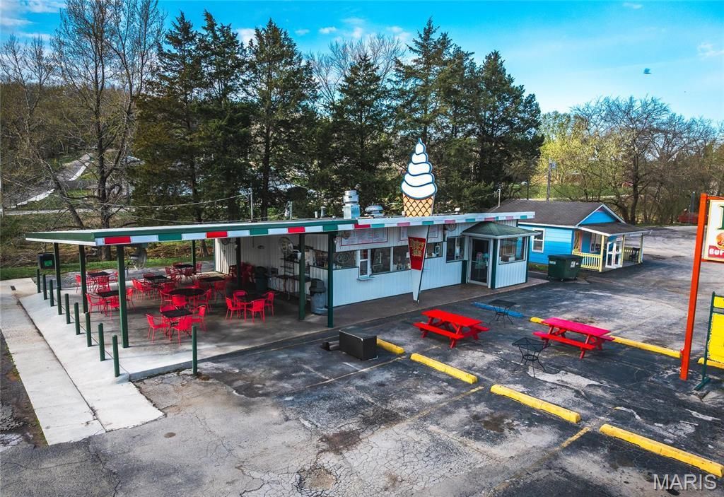 Turnkey, successful business and building for sale! Founded 1964, the beloved Dairy Isle & Grill is a local landmark in bustling Missouri recreation town. Known for grilled-to-order burgers and irresistible ice cream, this seasonal quick-service restaurant operates March-October with strong, predictable sales. The property includes standalone building with 3 walk-up service windows, covered outdoor seating, a detached small office building, and space that previously housed indoor dining-ready to reopen. Renovated in 2013 and 2022, it maintains its famous rooftop ice cream cone. Named 'Business of the Year in 2019 by the Steelville Chamber, boasts loyal customers, great reviews, and strong community roots. A rare chance to own a piece of Steelville history! Please do NOT ASK SELLERS FOR INFO. This sale includes property, equiptment, 2 buildings and business. Must sign NDA, show proof of funds/pre-approval before all showings. Thriving local favorite is just ready for its next chapter Location: City, Corner Location, High Traffic, Rural